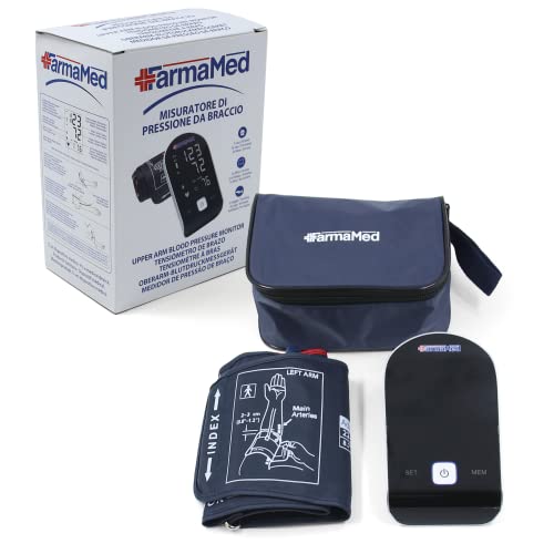 FARMAMED Misuratore Pressione Arteriosa Sanguigna da Braccio Digitale, Sfigmomanometro Elettronico Braccio, Diastolica e Sistolica, Frequenza Cardiaca, 180 Memorie, 2 utenti, Schermo LED, con Custodia