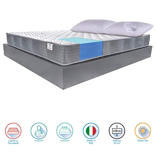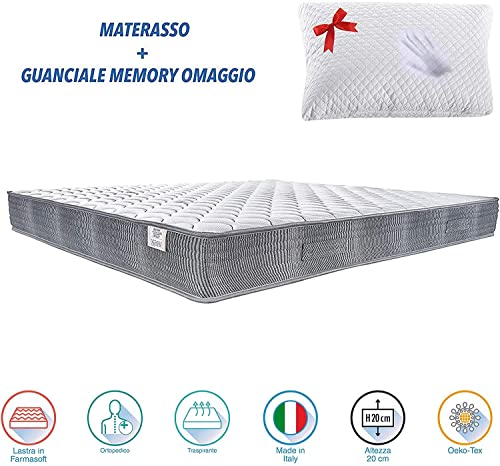 Farmarelax, Kit materasso matrimoniale,160x190, h20 cm,più due cuscino memory in regalo, 2 guanciali in omaggio, antibatterico, imbottitura in fibra ipoallergenica, 100% Made in Italy