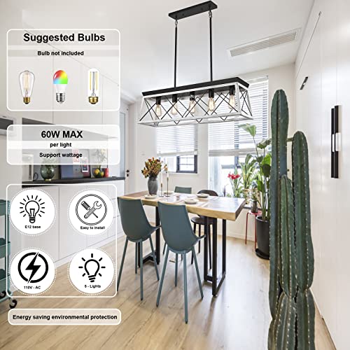 Light Up Your Life: 5-Lights rustic farmhouse chandelier use 5 heat-resistant UL standard E26 bulb socket. Compatible with LED, Incandescent, Compact Fluorescent, Halogen bulb. Dimmable when compatible dimmer switch used and dimmable bulbs. (Dimmer switch and bulb not included). perfect lighting effect and the 5-lights island lighting design will give you the necessary brightness, There will be no darkness.
