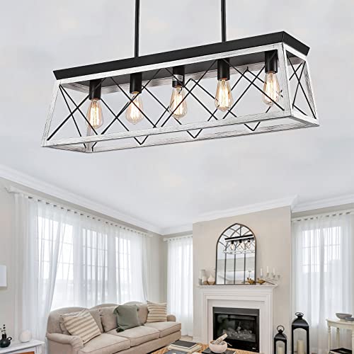 Farmhouse Chandelier Rustic, 5 Light Kitchen Island Pendant Lighting, Farmhouse Island Light Fixture, Rectangular Pendant Lighting Fixtures for Dining Room Pool Table