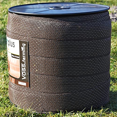VOSS.farming Nastro per Recinzione elettrica 200 m di Lunghezza, 40 mm, con conduttori 2x0,25 Rame + 8x0,25 Acciaio Inossidabile, Marrone