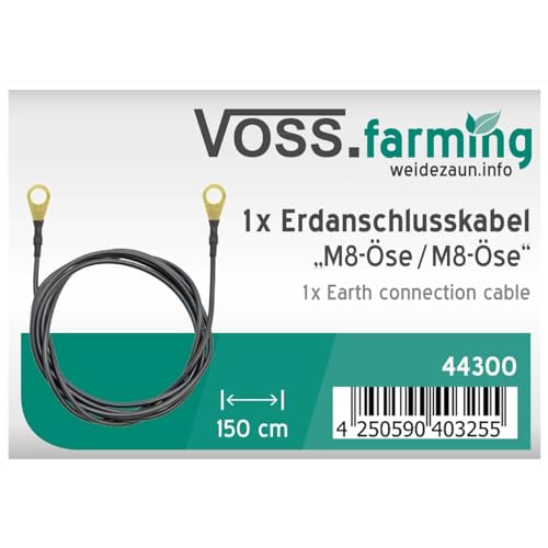 VOSS.farming Cavo per recizioni elettriche, Messa a Terra, Lunghezza 150 cm, ad Occhiello, Colore Nero