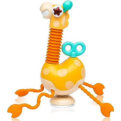 Farout! Giocattolo a ventosa, giocattolo per bambini dai 6 mesi in su, per seggiolone e tavolo, giraffa in silicone senza BPA, migliora la coordinazione delle mani e lo sviluppo sensoriale.