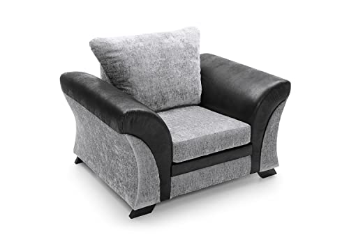 NEW Farrow ciniglia tessuto divano ad angolo, 2 + 3 Posti, Poltrona girevole in Nero e Grigio Poltrona