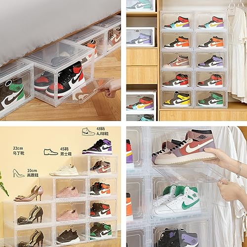Dimensioni adatte: la dimensione di ogni scatola di scarpe è di 37 × 28 × 22 cm, che è grande e abbastanza resistente per contenere diverse misure di scarpe da uomo o da donna. Allo stesso tempo, queste scatole per scarpe hanno un design chiaro e trasparente che può scoprire rapidamente quale paio di scarpe indossare e sfruttare il tempo in modo efficiente.