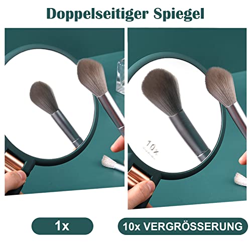 FARYODI Specchio a mano con ingrandimento 1 X 10X, specchio da trucco double face, piccolo specchio portatile, pieghevole con manico rotondo, specchio da viaggio, specchio da tavolo, girevole a 360