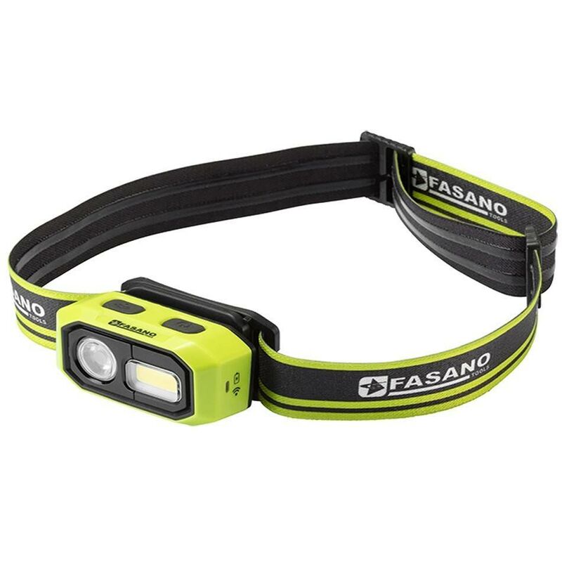 Lampada da testa a doppio LED da 480 Lumen, dotata di sensore di accensione e spegnimento contactless. Caratteristiche: 4 livelli di inclinazione;