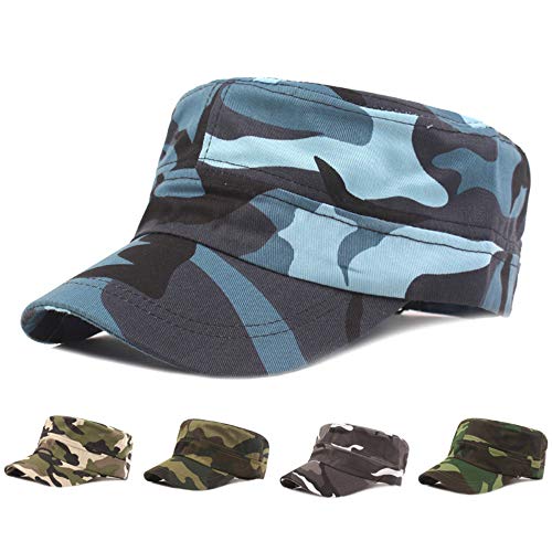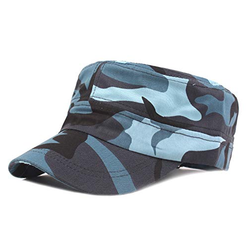 Fasbys Uomini Donne Cotone Twill Flat Top Hat Cappello Militare alla Moda Cappello Cadetto Regolabile Cappello Visiera Sport Cappello Baseball Unisex (Style4_Camo_Blue)