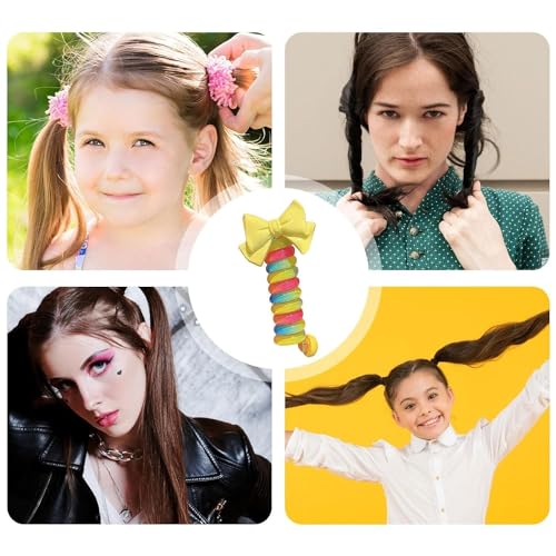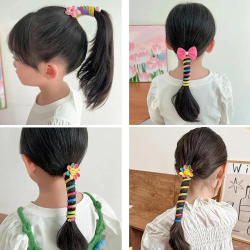 DISEGNI NUOVI E UNICI - Il nostro cavo telefonico per elastici per capelli a spirale è disponibile in 7 stili, inclusi graziosi fiori, fiocchi e altre decorazioni. Non solo può rendere l'acconciatura di tua figlia più ordinata, ma anche decorarle la testa!