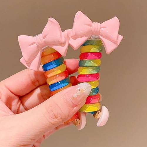 Fasce per capelli colorate con filo telefonico per bambini, 5 pezzi, elastici per capelli intrecciati con filo telefonico, elastici a spirale, senza pieghe, elastici per capelli, coda di cavallo,