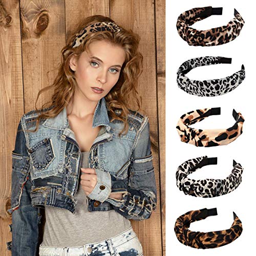6 fasce per capelli leopardate in raso annodato fascia per capelli larga, accessori per capelli per donne e ragazze