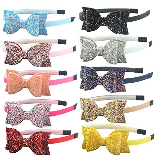 XIMA 10 fasce per capelli in plastica con paillettes glitterate e fiocco, per accessori per capelli per bambini