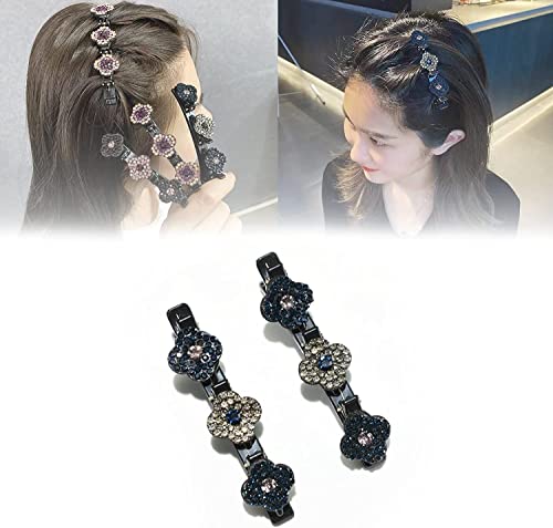 [Fermaglio per capelli con strass di trifoglio]: clip per artigli per capelli con fascia a treccia a doppio strato alla moda, il simpatico fermaglio per capelli può essere bloccato su un lato dei capelli. Viene generalmente utilizzato per riparare i capelli rotti o mantenere l'acconciatura.