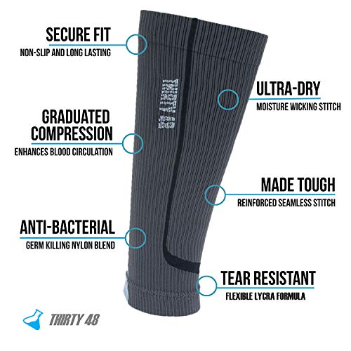 Fasce a compressione graduata per i polpacci di Thirty48, Serie Cp - Grigio - 15-22 mmHg - Unisex - Previene la periostite tibiale, dolori e crampi ai polpacci - Migliora la circolazione - Ottimizza il recupero rapido, incrementando l'apporto di ossigeno ai muscoli - Per il calcio, la corsa, il ciclismo, la camminata, la pallacanestro, il crossfit, e i viaggi - Packaging USA