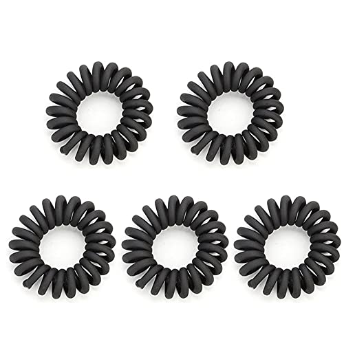 5PCS Fasce Elastici per Capelli Legami di Capelli Elastic, Capelli mituso gomma Spirale Matte plastica cavo telefonico-nero