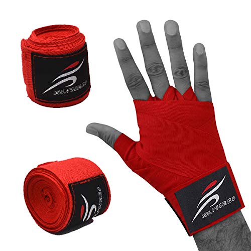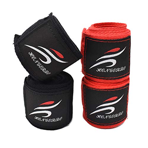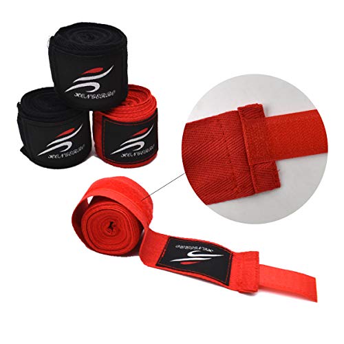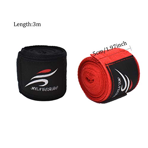 Set per avvolgere le mani nel pugilato: confezione comprendente 2 bende per avvolgere le mani nere e 2 rosse (3 m). Adatto per uomo donna e bambino.