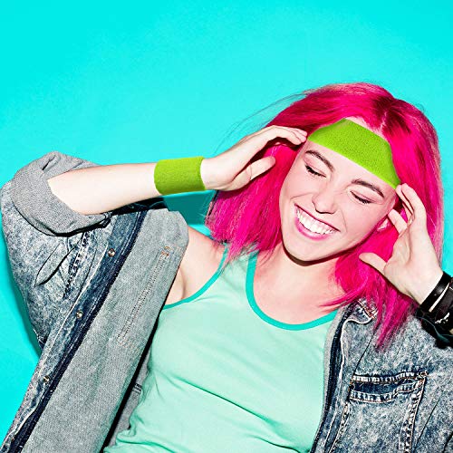 Fasce da Polso, Include Polsino di Sport e Braccialetti Polsino Cotone a Strisce Fascia da Polso Set per Uomini e Donne (Neon verde, 6 pezzi)