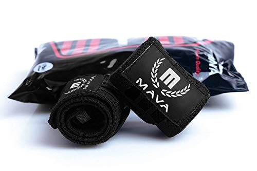 MAVA Fasce da polso (1 paio) per sollevamento pesi/cross training/allenamento del giorno/palestra/attrezzi/body-building, lunghezza: 35,5 cm, larghezza 7,6 cm, molto resistenti, forte sostegno, con chiusure in velcro, unisex