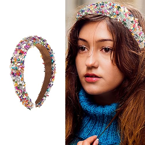 Fasce Di Strass Multicolore,Fasce Cristallo Scintillante, Barocca Boho Gioielli Ampia Fascia Per Capelli,Moda Imbottito Glitter,Scintillante Fascia Elastica Finto Cristallo Diamante (rainbow)