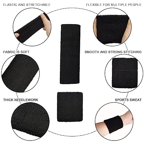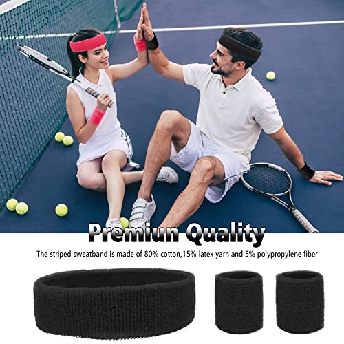 Fasce per il Sudore a Righe con Fascia Sportiva Braccialetti,3 PCS Polsini per Fascia Fasce Antisudore Set Fascia Antisudore in Cotone per Sport per Tennis Allenamento Boxe Palestra Esercizio Nero
