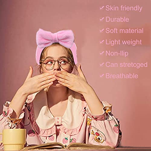 Fasce per il trucco per viso,Fascia Viso Spa per Trucco e Lavaggio Viso,Fascia per Capelli Donna, Fascia per Capelli Trucco Bowknot, Elastico Testa Avvolgere,Cerchietto per Capelli,Rosa