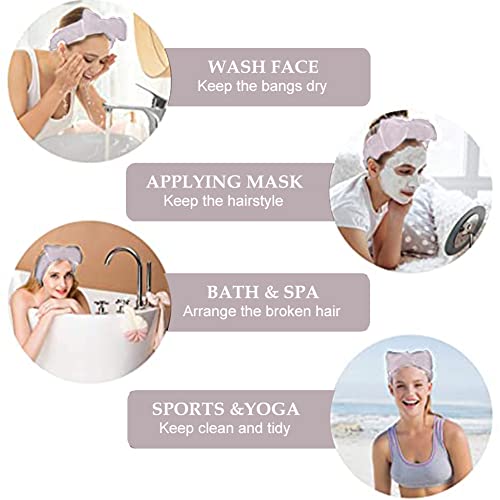 Fasce per il trucco per viso,Fascia Viso Spa per Trucco e Lavaggio Viso,Fascia per Capelli Donna, Fascia per Capelli Trucco Bowknot, Elastico Testa Avvolgere,Cerchietto per Capelli,Grigio