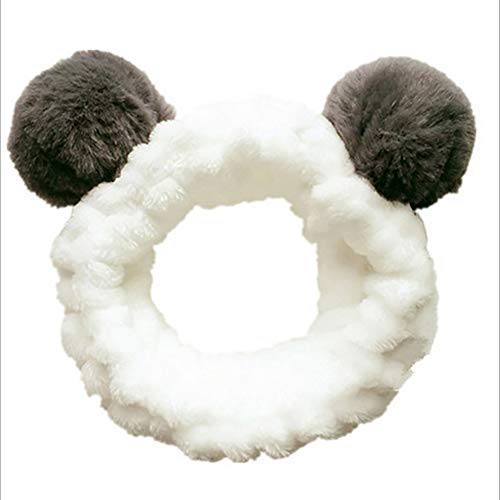 N/U Fasce per trucco per il lavaggio del viso Maschera per il viso doccia, per donna Ragazza Fasce per capelli in peluche Fascia elastica per capelli del felpa con pompon Grigio,Panda