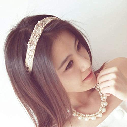 Fascetta per capelli in pizzo dolce da donna con perle finte in pizzo vintage con strass di cristallo fascia per capelli per donne e ragazze accessori elastici