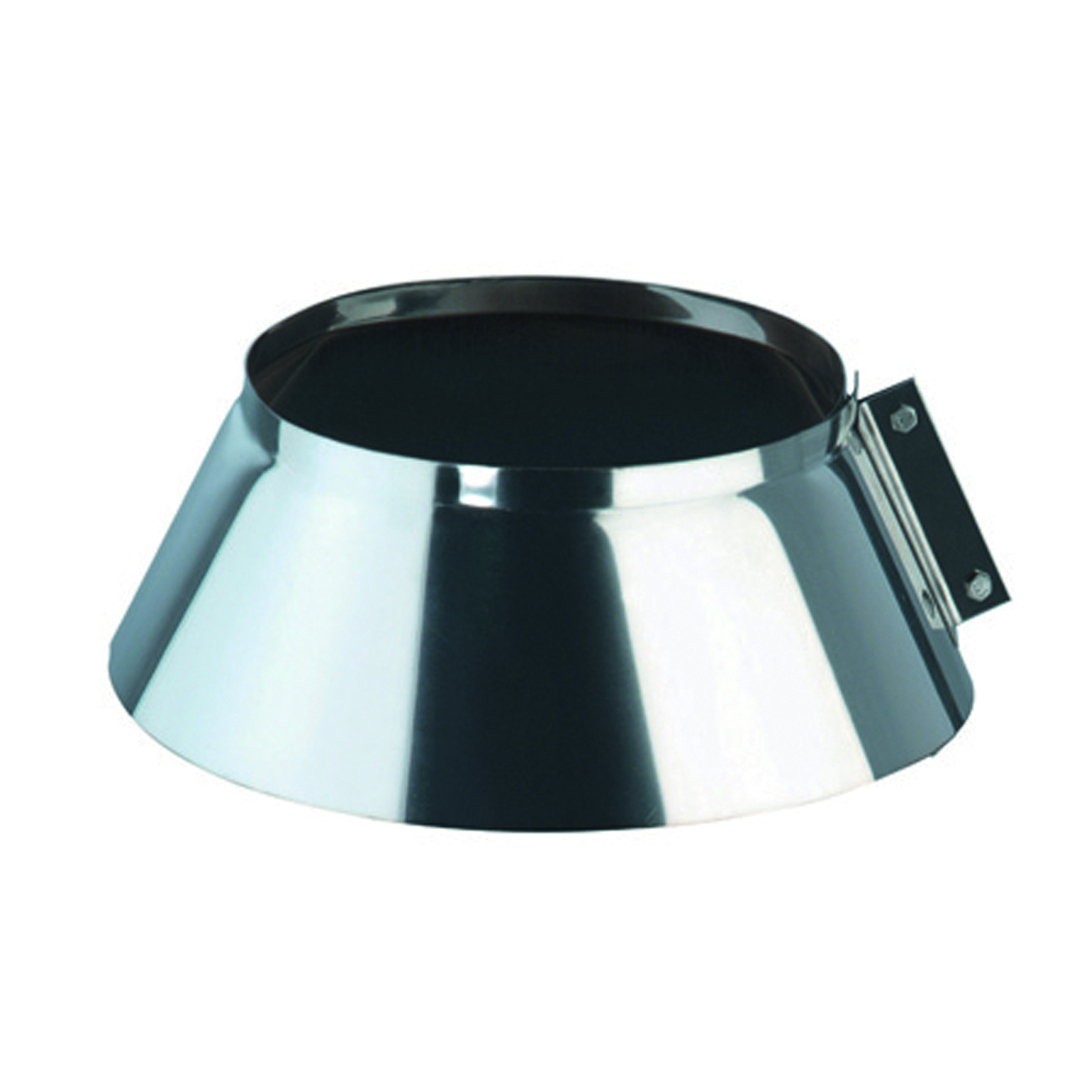 Fascetta per faldale inox doppia parete Dn 130/180 mm. La fascetta viene utilizza sopra il tetto in corrispondenza del faldale. La fascetta anti intemperie avvolge l'elemento lineare e il cono del faldale, serrendo le viti e sigillando il tutto con un velo di silicone, impedisce all'acqua piovana di entrare nel cavedio.