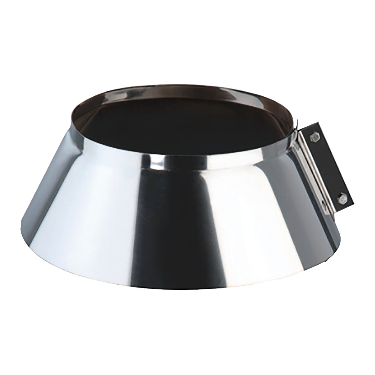 Fascetta per faldale inox mono parete Dn 80 mm. La fascetta viene utilizza sopra il tetto in corrispondenza del faldale. La fascetta anti intemperie avvolge l'elemento lineare e il cono del faldale, serrendo le viti e sigillando il tutto con un velo di silicone, impedisce all'acqua piovana di entrare nel cavedio.