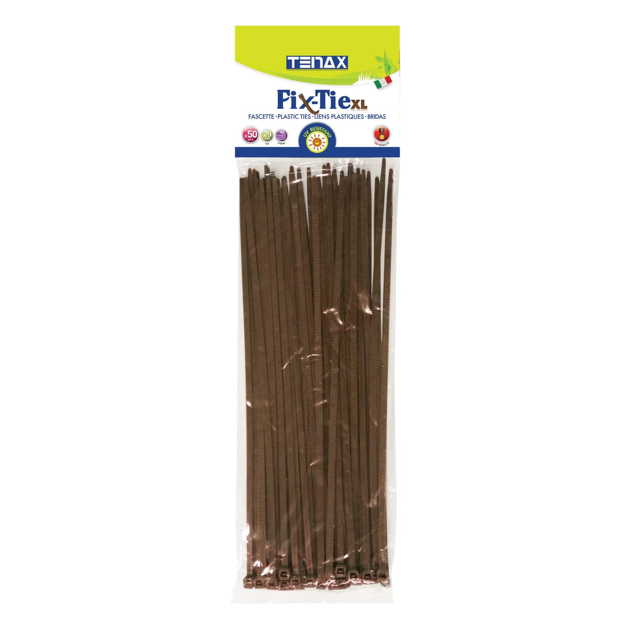 Fascette in plastica per il fissaggio di reti e schermature. Perfette per uso esterno ed interno. Lunghezza fascetta 290 mm, larghezza fascetta 4,8 mm. Colore marrone. Confezione da 50 pezzi. Stabilizzate ai raggi UV, mantengono colore e caratteristiche nel tempo. Super resistenti, non si aprono.