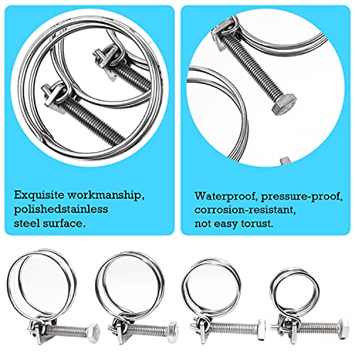 Alta Qualità: Fascette Doppio Filo realizzata in acciaio inossidabile 304 di alta qualità, resistenza alle alte temperature, buona tenacità, resistenza alla corrosione, non facile da arrugginire, resistenza alla torsione, resistenza alla pressione, bulloni sono robusti e non si sfilano.