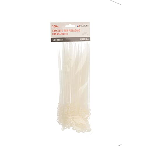 Fascette Cablaggio con Occhiello in Nylon 6.6, Misura 4.3 x 220 mm, Colore Neutre-Trasparenti, Confezione 100 pezzi