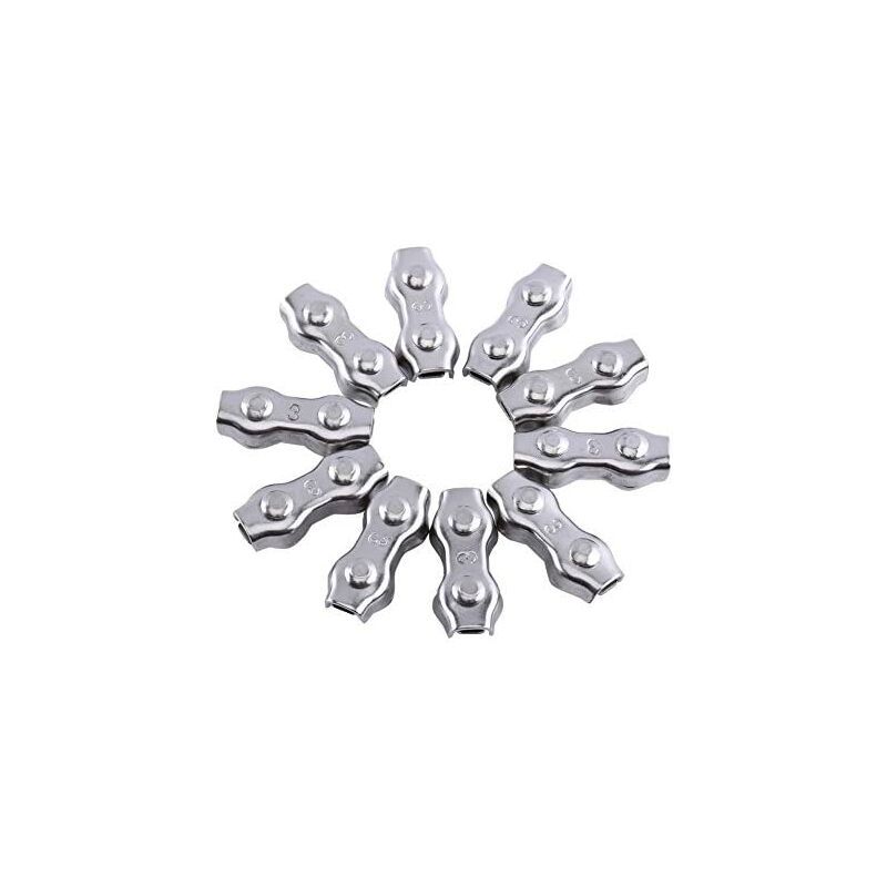 Fascette in acciaio inox duplex per fune in acciaio inox, per applicazione in ambienti esterni o umidi Realizzate in acciaio inox, finitura zincata, resistente alla corrosione e alla ruggine < p > Misura: 3 mm;