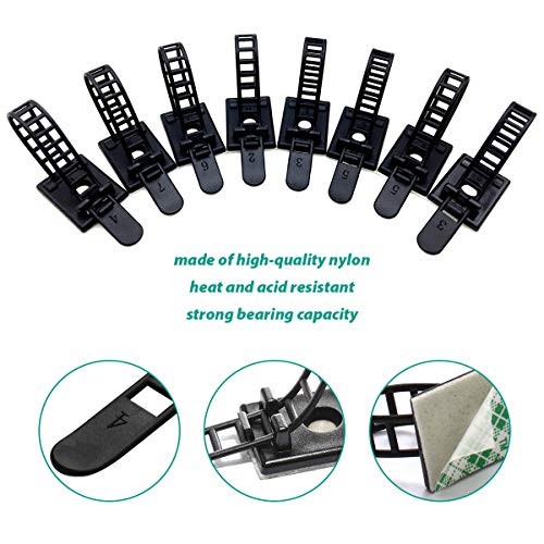 25 fascette fermacavo adesive, fascette regolabili in nylon e clip per cavi adesive con montaggio a vite opzionale