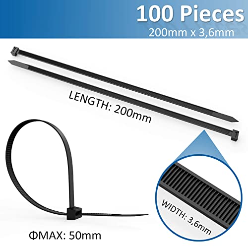 Fascette Plastica 200mm x 3,6mm — 100 Pezzi Fascette Nere Nylon Cavi Stringicavo Per Legare Fili Cavi Elettricista Casa Ufficio Fai Da Te per Tenere i Cavi in Ordine
