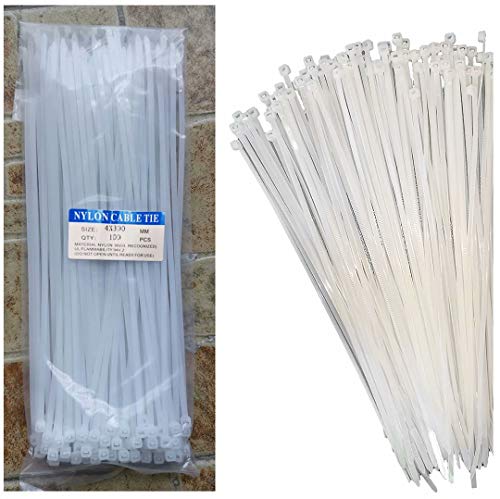 100 fascette per cavi in plastica, lunghe e resistenti alla trazione da 18 kg, autobloccanti, per ufficio, casa ed esterni, 300 mm x 4 mm, colore: bianco