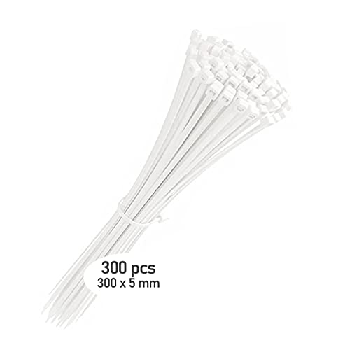 300 Fascette Universali Plastica Per Cablaggio Elettricista Bianche - 5x300mm - Fascette Stringicavo standard, Fermacavo Autobloccanti Resistenti Per Installare Reti, cavi ordinati