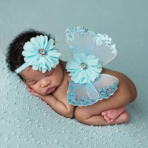 Fascia per capelli per bambine con ali d'angelo, kit per capelli per bambini con foto per bambini e neonati, colore: blu