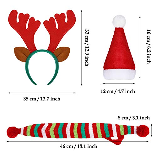 Fascia per Capelli con Corna di Cane di Natale Cappello da Babbo Natale e Sciarpa a Righe Fascia Natalizia con Renne Accessori per Costumi da Festa per Cani e Gatti, 3 Pezzi