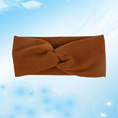 Fascia per capelli a fascia in cotone a fascia incrociata Fascia larga a nodo morbido Fascia elastica per donna tinta unita, Caramello