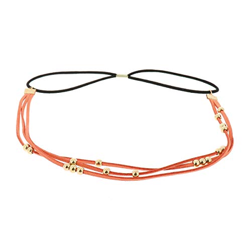 Fascia Capelli Donna Arancione - Fascia Perline Dorata e Suede aspetto Velluto - Fascia Sottile con Perle Taglia unica - Headband Matrimonio Vintage - Look originale Boho, Hippie chic