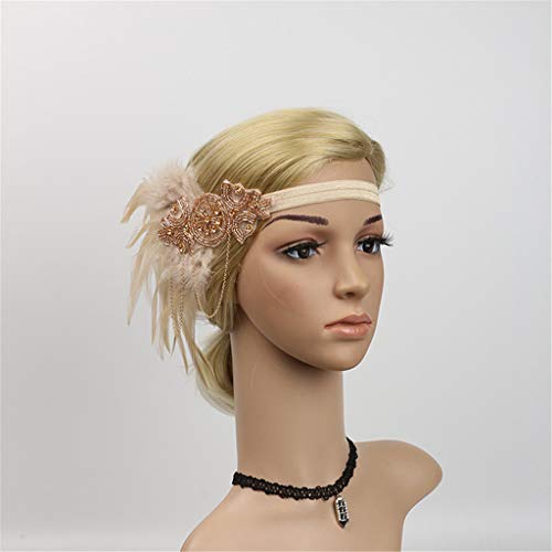 Fascia capelli donna Anni 20 Gatsby Flapper Headband Fascia Charleston con Piuma Anni 20 Fascia Capelli Gatsby per Festa a Tema Vintage Matrimonio