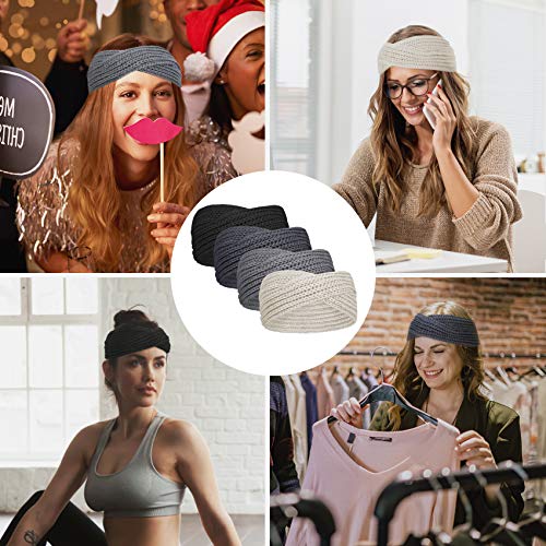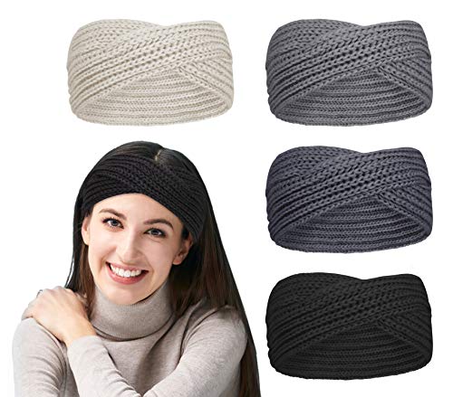 Fascia Capelli Donna Inverno, 4 Pcs Fascia Capelli Caldo Invernale All'uncinetto Donna Fasce per Capelli Donne in Maglia Cerchietto Ragazze Turbante per Attività All'aperto o Vita Quotidiana