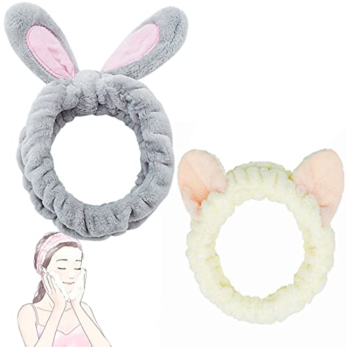 Fascia Capelli Donna Trucco, 2 Carino Fascia per Capelli con Orecchie di Gatto e Coniglio, Fascia Capelli Donna per Skinscare, Lavare il Viso, Make up,struccarsi, spa, sport, Doccia e Terme