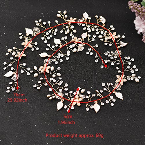 Fascia Capelli Fiore Donna Vite a Pelo Lungo Treccia Cerchietti Damigelle Accessori Acconciature Sposa - Gioielli per Testa Ragazza in Perle e Strass(76 cm/30 Pollici), Gold