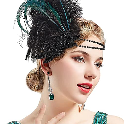 IYOU Fascia per capelli Flapper in Piuma Copricapo Gatsby di Cristallo Nero Partito Prom Accessori per capelli per le Donne