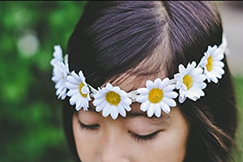 Fascia per capelli a forma di margherita corona di girasole corona floreale corona di girasole per capelli Boemia per sposa donne ragazze festa di nozze festa in spiaggia festival (bianco)