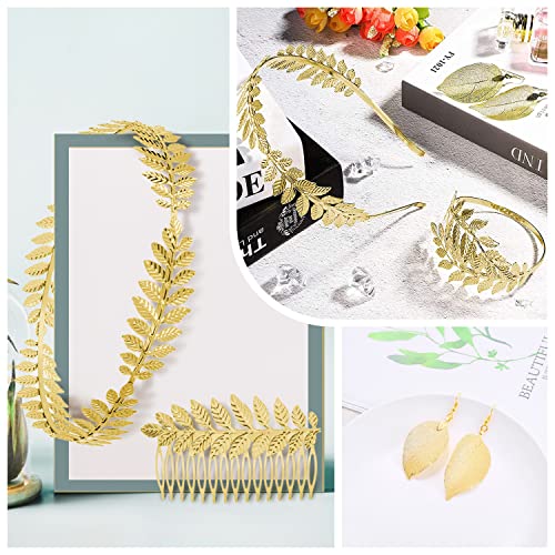 Accessori per capelli con foglie dorate: sono forniti 2 stili di accessori per capelli con design a foglie. Include 2 fasce per capelli da sposa, 2 pettini per capelli greci e un paio di orecchini. Colore: oro.