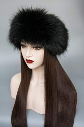 Chic Vibe - Fascia per capelli in pelliccia sintetica, fascia per orecchie, colore nero, imitazione di pelliccia di volpe